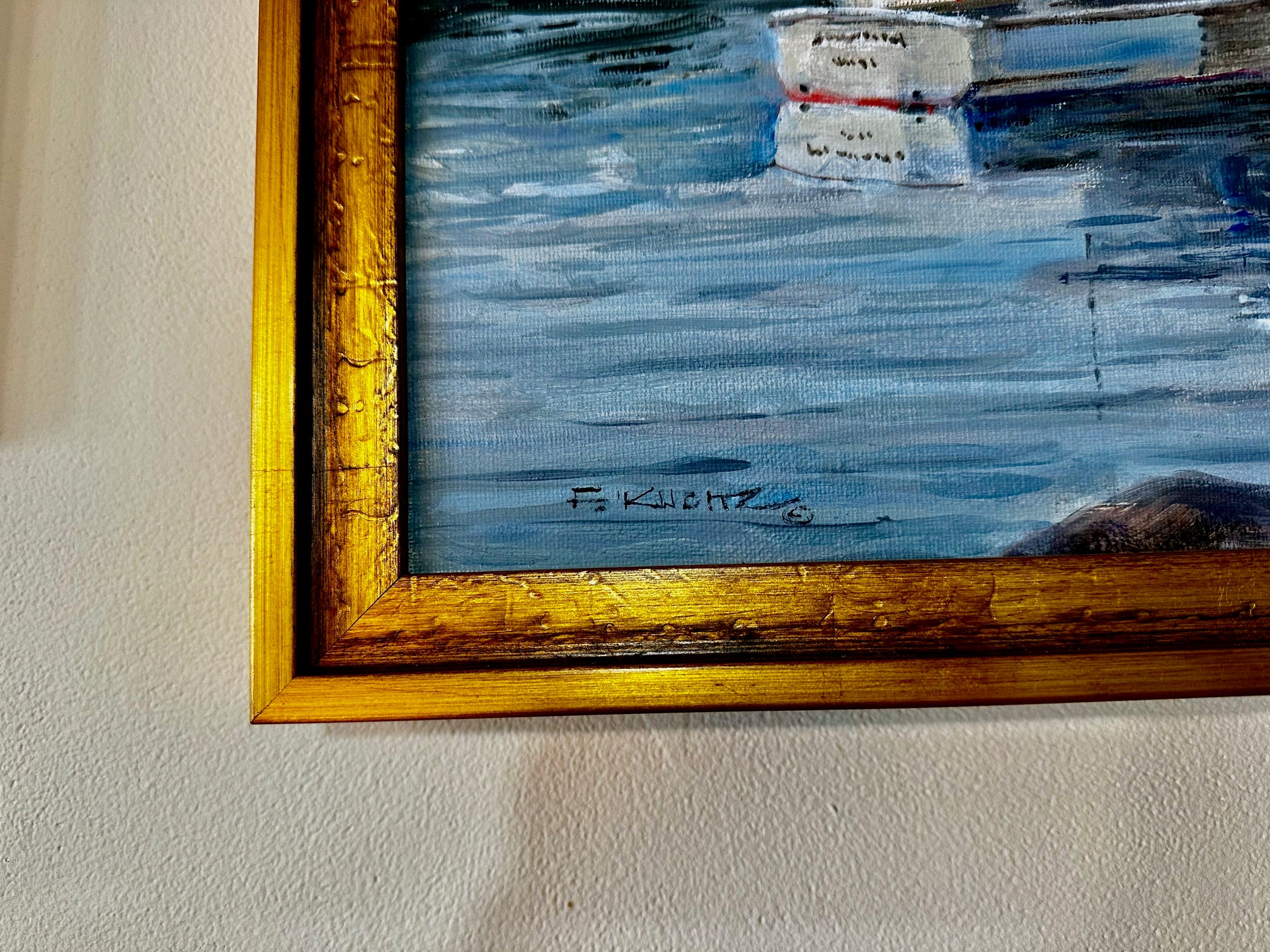 Hendrick's Head Light Station is a spectacular oil on panel by renowned artist Fritz Kubitz. The painting itself is 18" x 24" and the price includes a classic gold wood frame.
